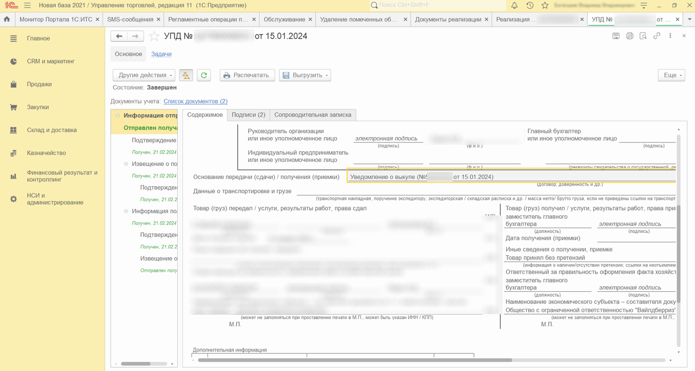 Явный пример этого - «Уведомление о выкупе» для отправки документа WildBerries.